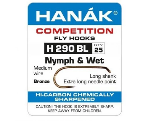 A superb long shank barbless hook from Hanak. Highly recommended for the lakes for Nymphs, Shuttlecocks, Dries, and Lures.